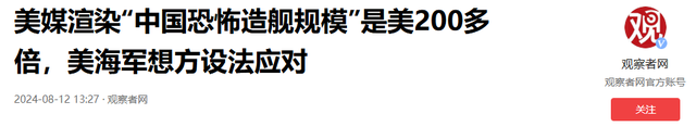 《美媒渲染“中国恐怖造舰规模”是美200多倍,美海军想方设法应对》——观察者网